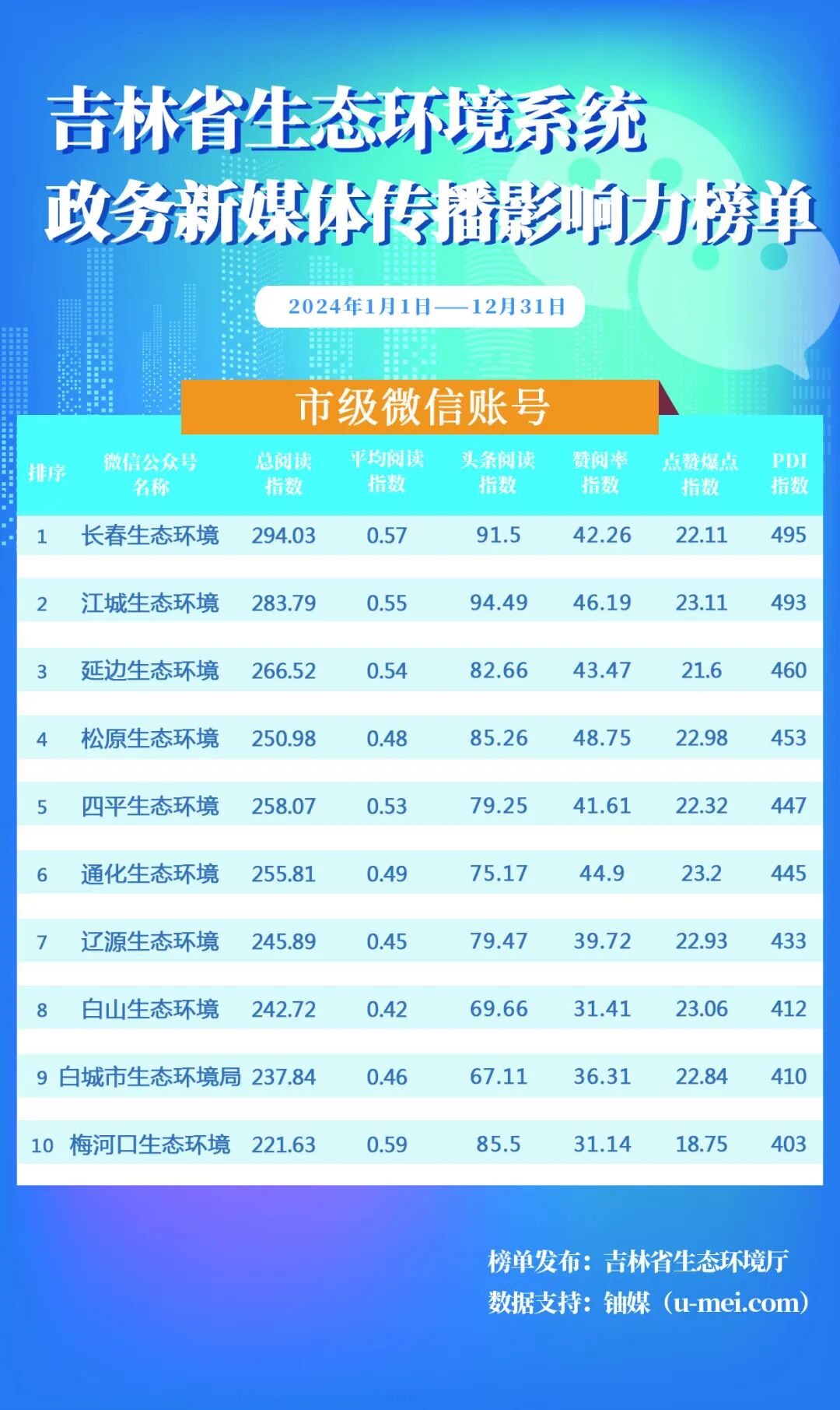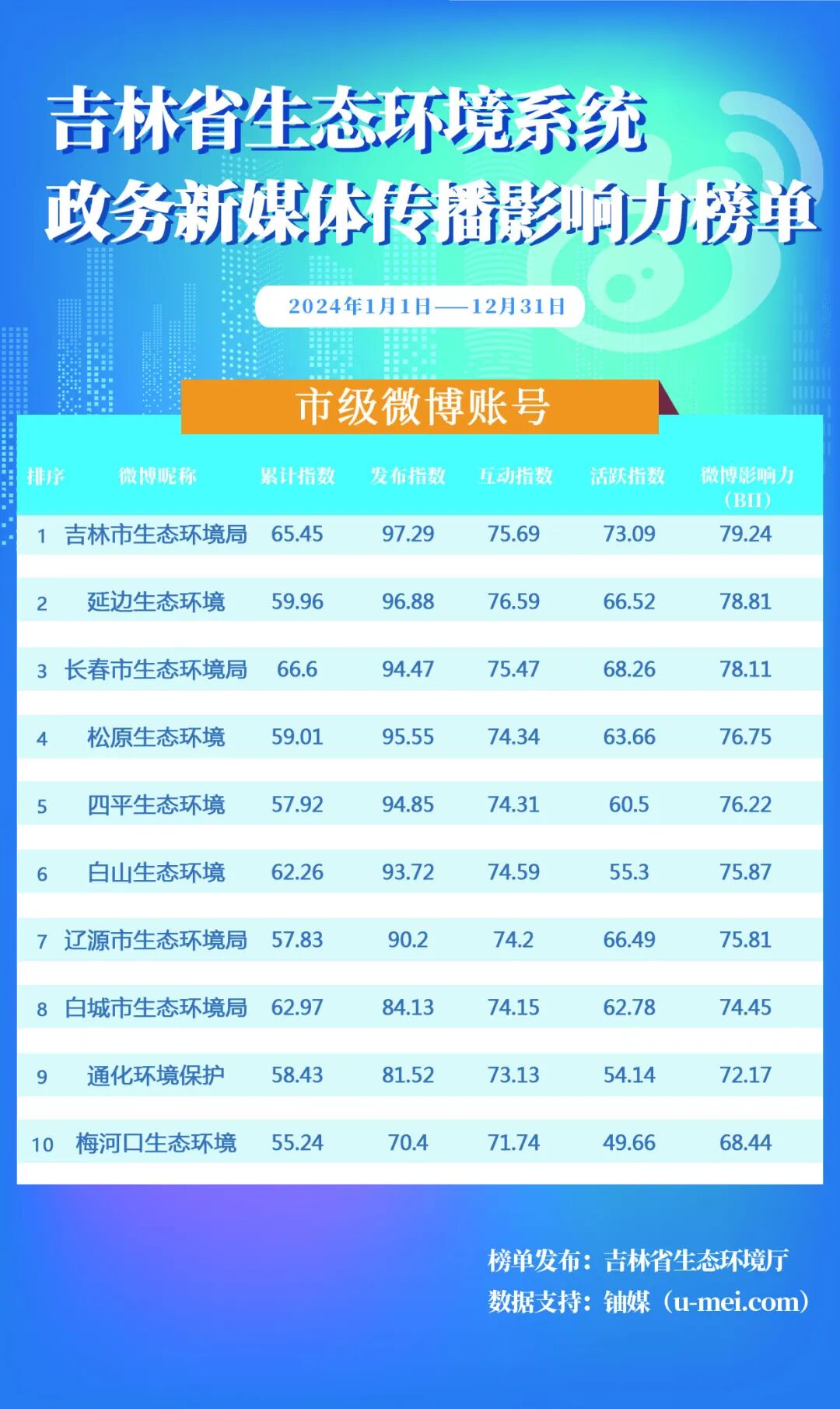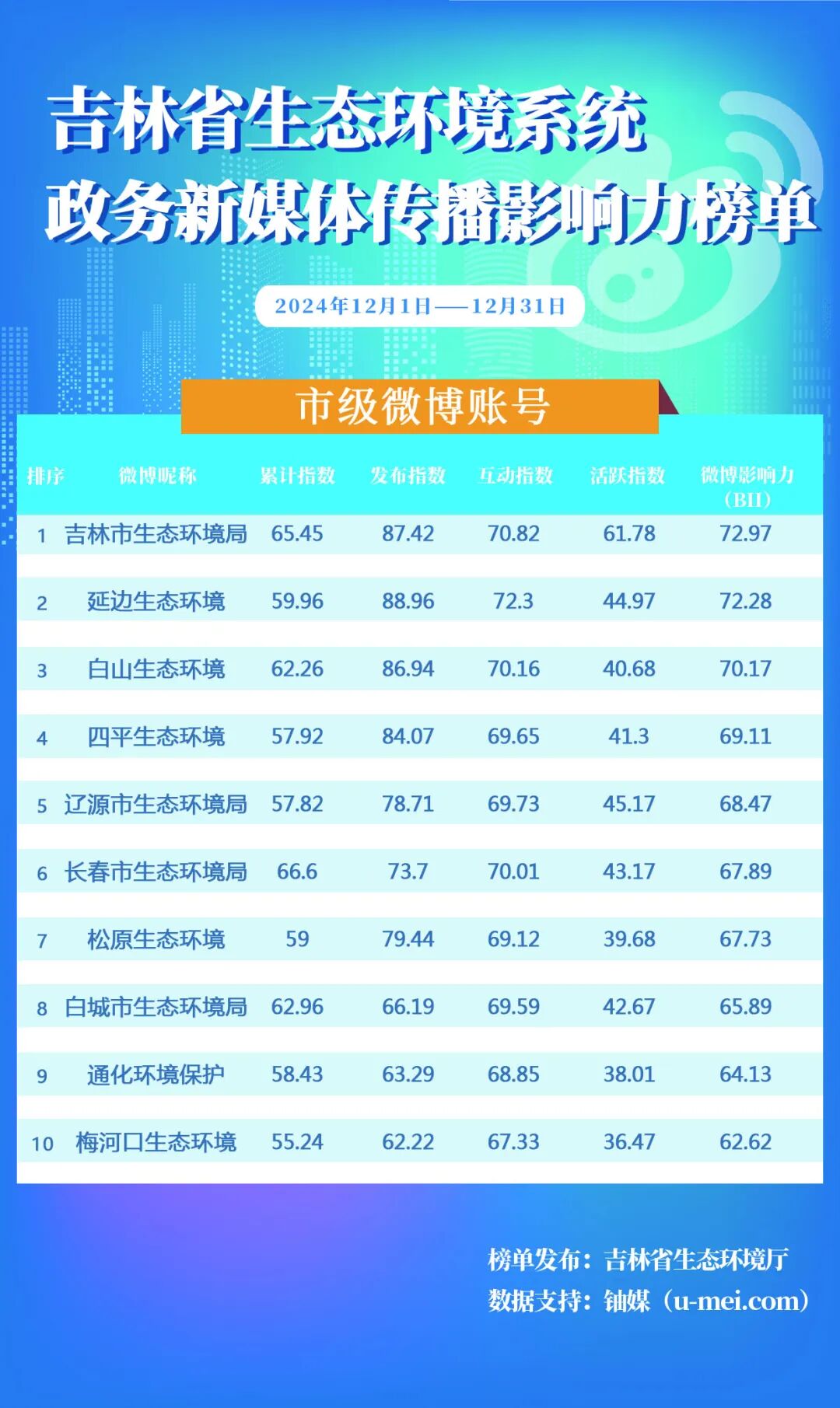 传播 | 吉林省生态环境系统政务新媒体传播影响力2024年12月及全年榜单,请查看!